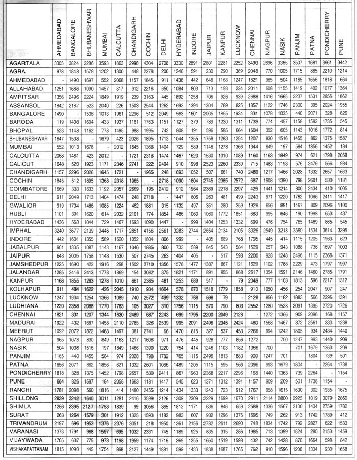 Distance Chart